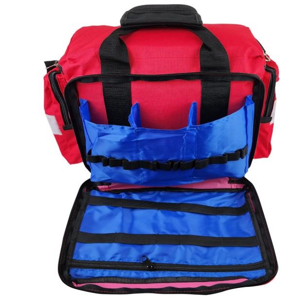 The Deluxe Trauma Kit features a comprehensive assortment of first aid and emergency rescue supplies for quick response to minor and major medical emergencies in a Meret Omni Pro X bag. This advanced BLS kit includes additional items to deal with more serious injuries, broken limbs and severe burns and is designed to treat wounds in an efficient way while minimizing the transmission of communicable illnesses and diseases. This kit suitable for emergency rescue personnel, fire fighters, paramedics, police, first aiders, and nurses