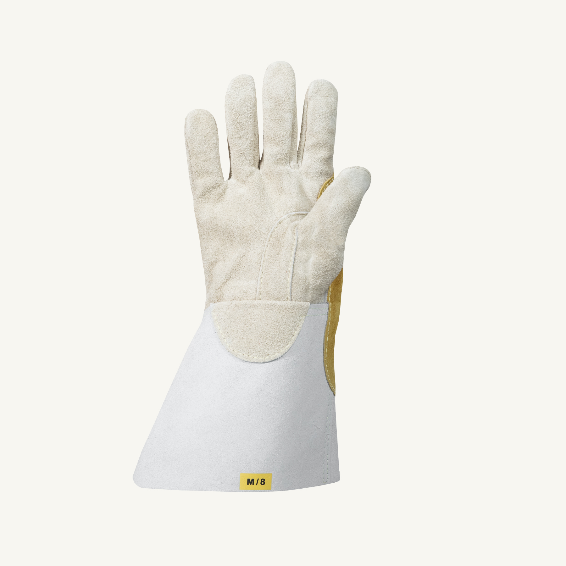Welding gloves for heat protection with reinforced back patches for additional spark protection