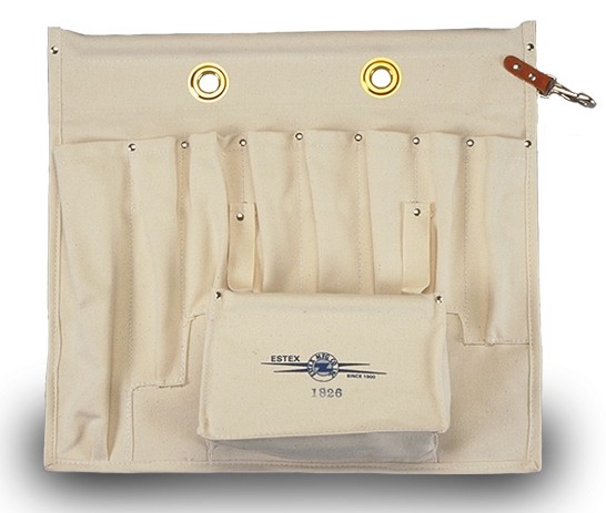 Estex has designed a series of tool aprons with multiple pocket configurations to fit inside the bucket. They were designed to fit flat against the liner to minimize interference with line work yet maximize a linemen’s ability to reach the necessary tools. Each apron has a non conductive rod in the top for support as well as two brass grommets.